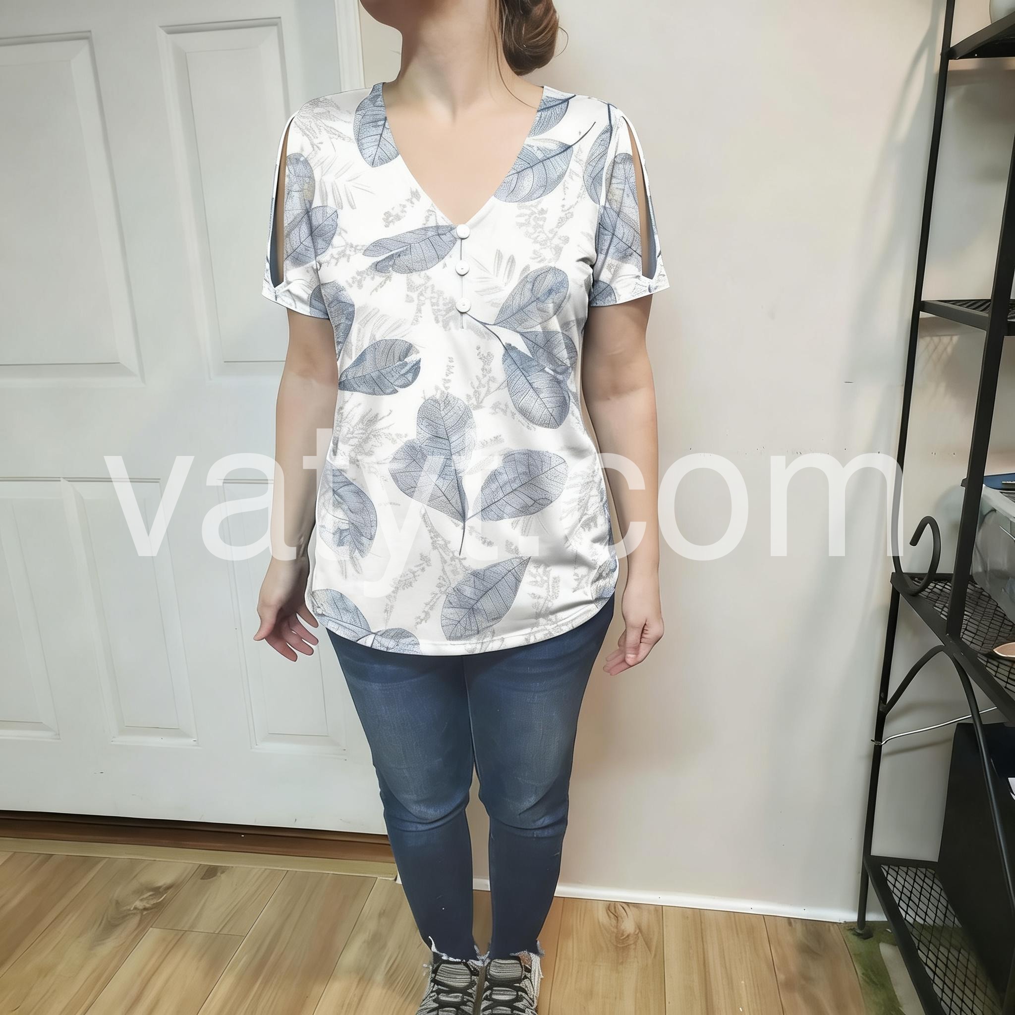 - Neckline: V-neck