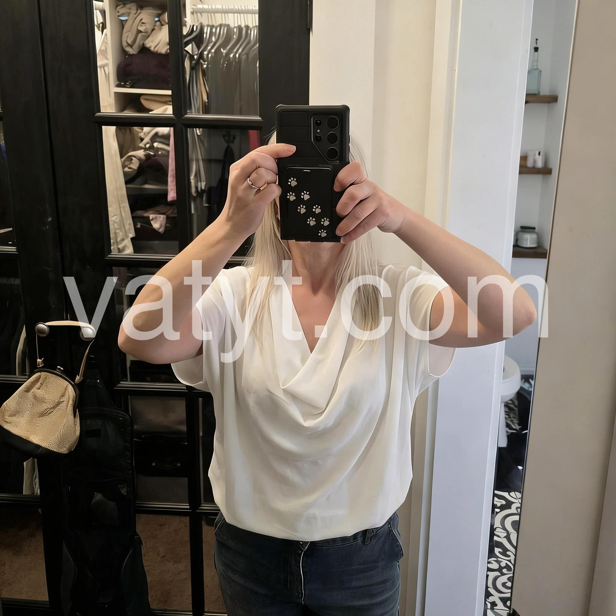 Absolutely love this top! The draped cowl neck is so flattering and elegant. The material is lightweight and flowy, perfect for summer or layering under a cardigan. It looks fantastic paired with my favorite jeans.