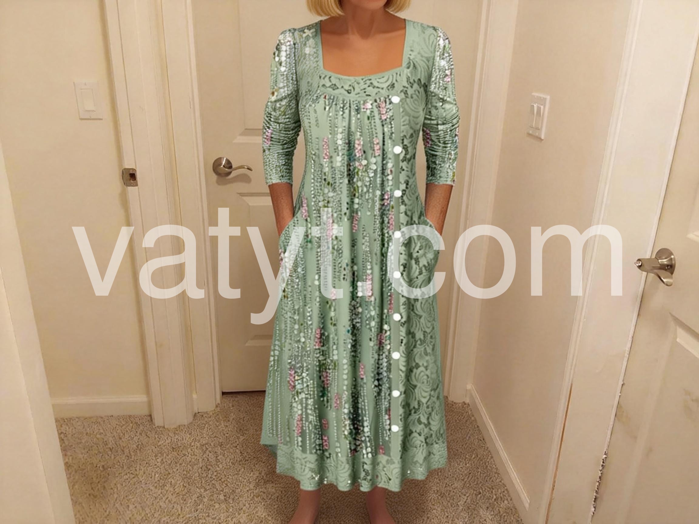 Style# 1372212Imagine effortless elegance that turns heads at every glance. This fresh green midi dress captures modern sophistication with its architectural square neckline that frames the collarbone beautifully, paired with graceful long sleeves for refined polish. The A-line silhouette flows with understated grace, while the luxurious rayon-elastane blend moves like silk against your skin—stretchy enough for all-day comfort, yet structured enough to maintain its impeccable shape. Practical side pockets add a touch of everyday luxury, while the midi length strikes the perfect balance between timeless and contemporary. Whether you're navigating the office, attending weekend brunches, or stepping into evening plans, this dress adapts seamlessly to your lifestyle. Machine washable for effortless care. Discover the dress that makes you feel as good as you look.