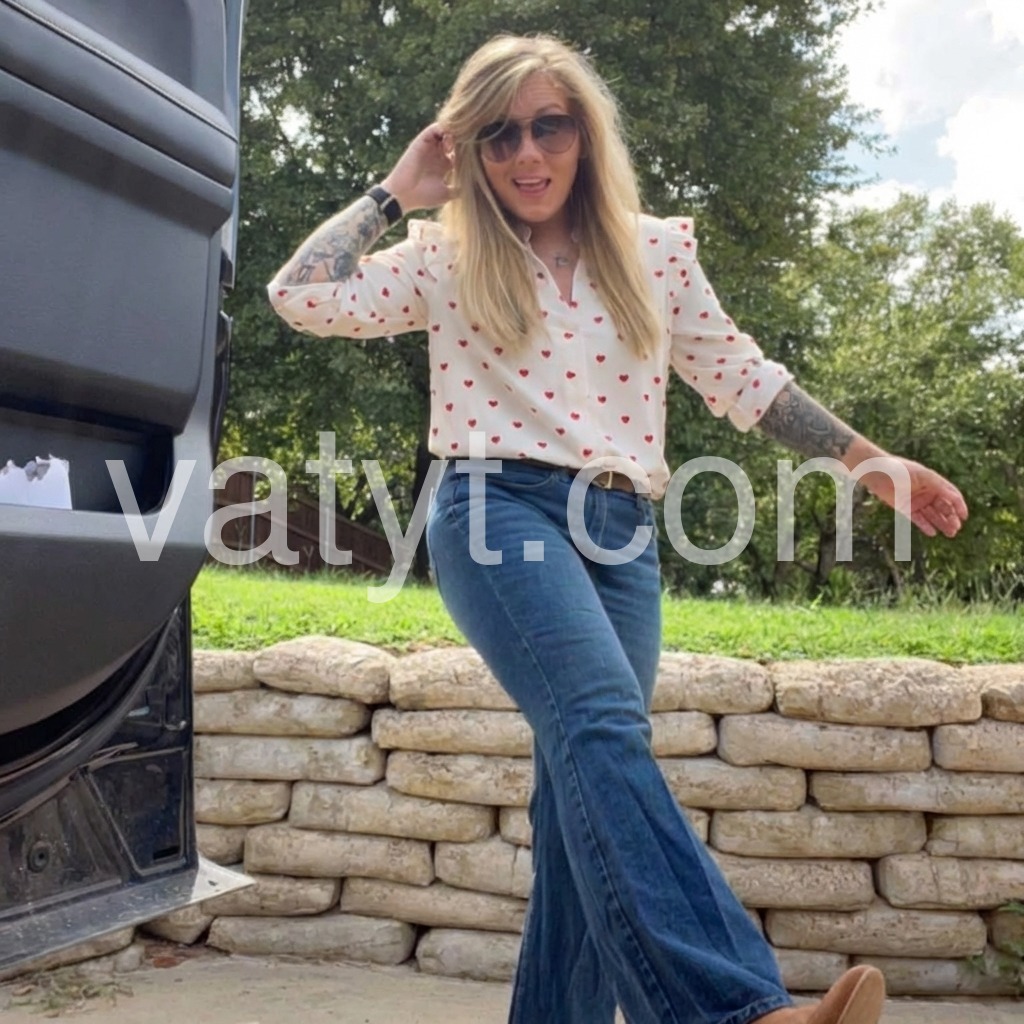 Take this lightweight red heart blouse anywhere with its fitted leg o’ mutton long sleeves with flared ruffles on the shoulders. The plunging fold-over v-neckline and fitted silhouette can be paired with high-waisted denim, slacks, or shorts. Finish your look with casual sneakers, sandals, and so much more. Wash in gentle or delicate cycle with light colors. Keep away from dark colors. The delicate fabric may absorb dark colors.