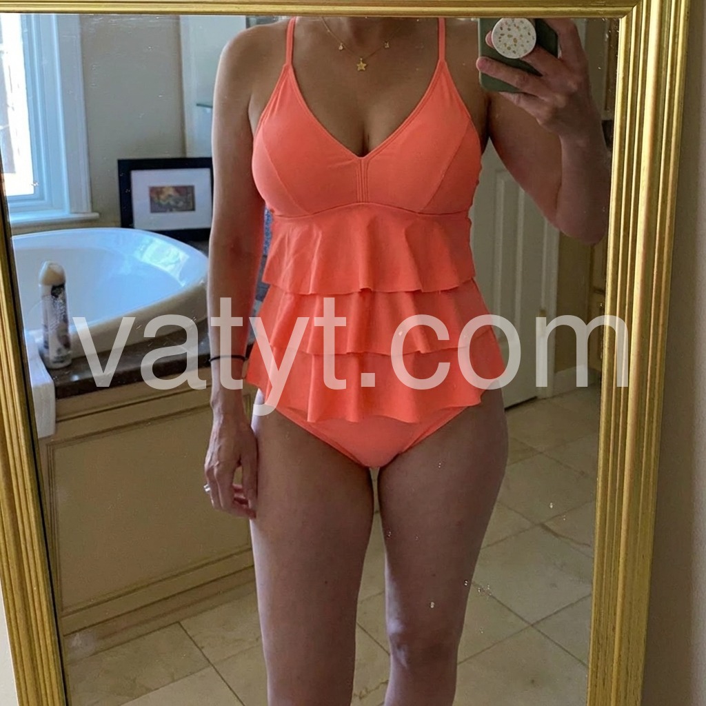 Love this swim top. Flattering even on my post child bearing mom belly. Holds up well to ocean water and washing. Fit as expected. Worth the price. Would buy again.