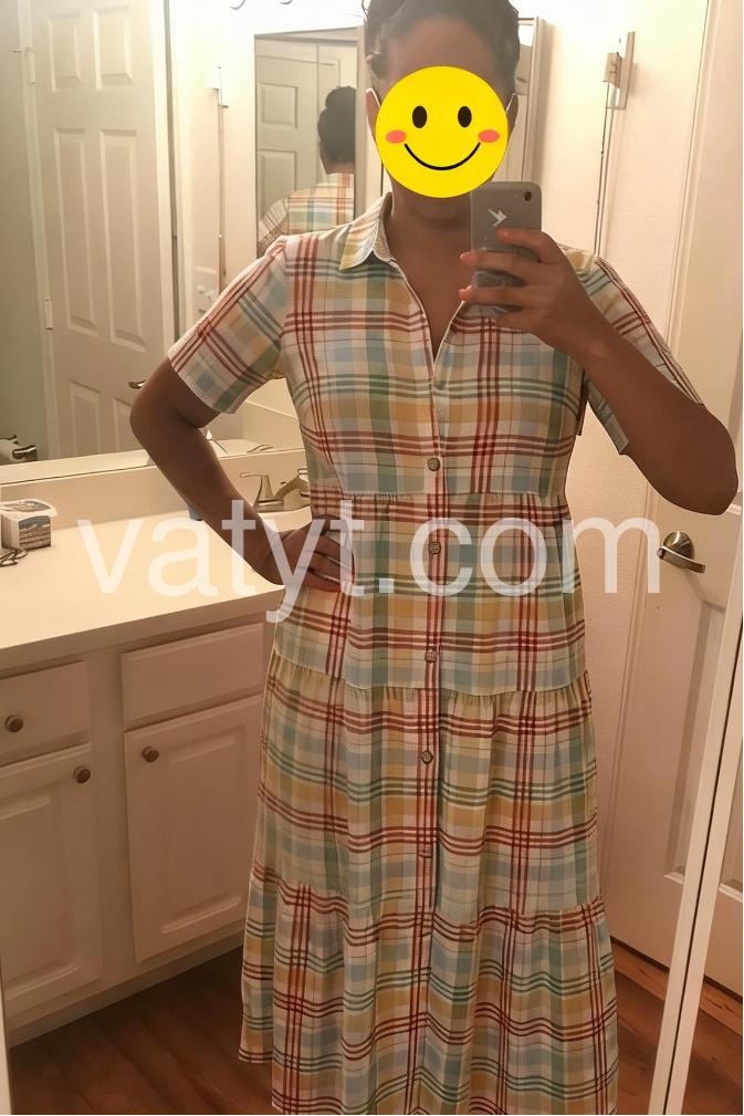 This dress is so versatile and effortless. The fabric is light and airy, making it a staple for my summer wardrobe. I love the short sleeves and the subtle pastel plaid design. Great value for the price.