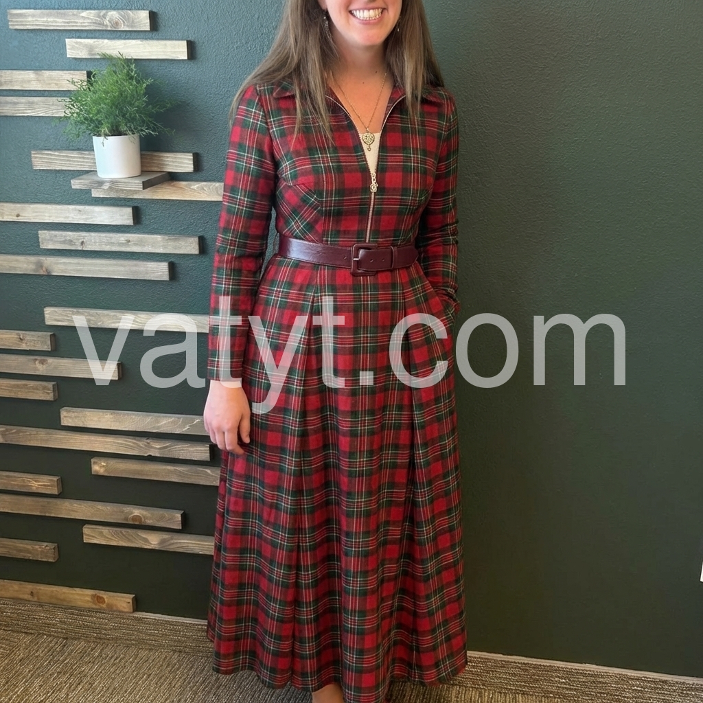Elevate your wardrobe with this striking red plaid maxi dress, designed for those who appreciate timeless style with contemporary flair. The full-length silhouette offers sophisticated coverage, while the zip front closure provides effortless dressing and versatile styling options. Long sleeves deliver warmth and elegance, making this piece ideal for layering or wearing solo across seasons. The classic plaid pattern adds visual interest and pairs seamlessly with boots, sneakers, or heels depending on the occasion. Perfect for casual outings, professional settings, or weekend gatherings, this dress combines comfort with refined aesthetics for a polished everyday look.