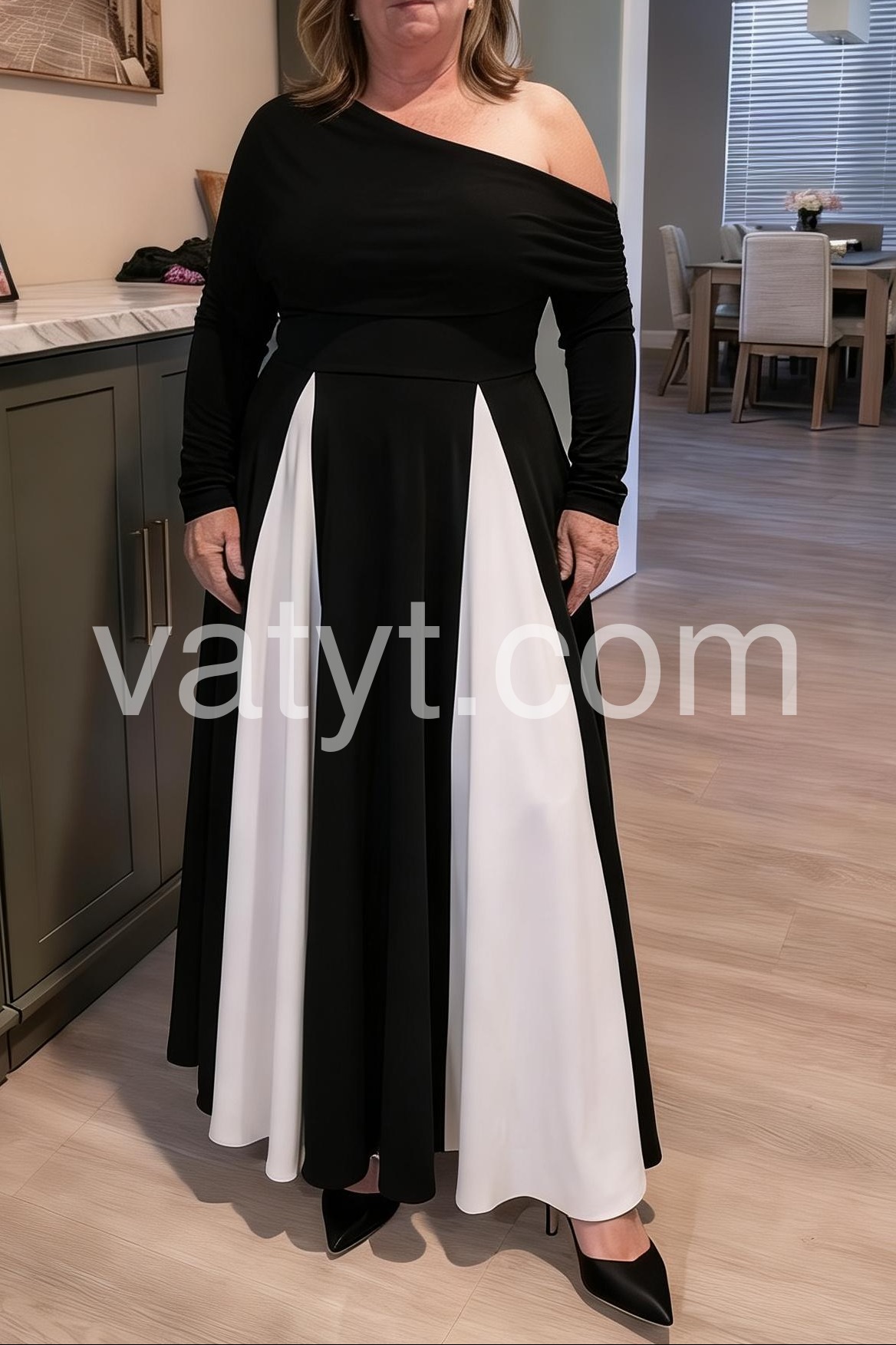 This Black and White Color Block Maxi Dress is the perfect blend of modern and classic styles. Its sleek and stylish design is perfect for any occasion and its color blocking adds a touch of elegance. Made with high-quality materials, it offers both comfort and sophistication.